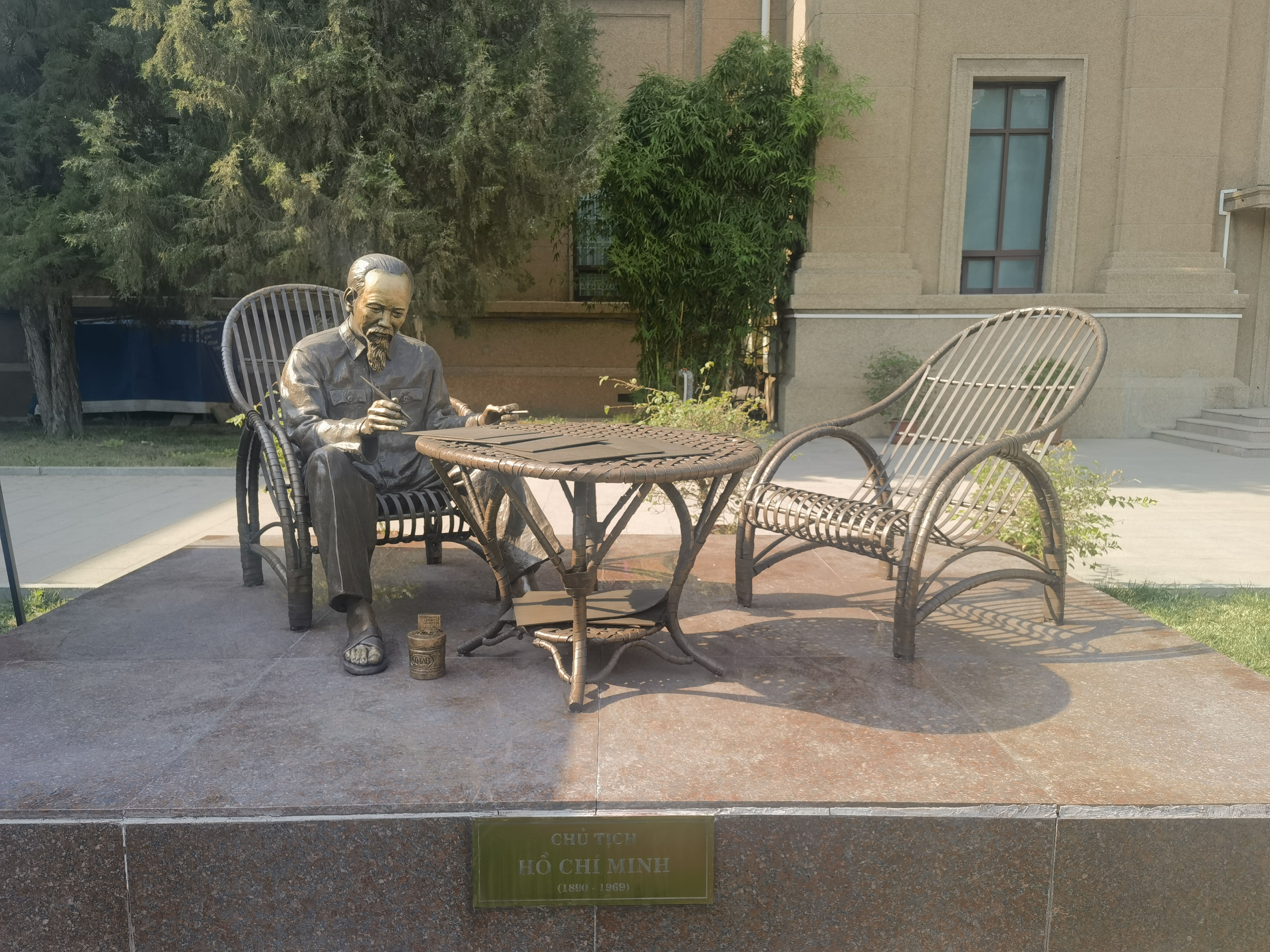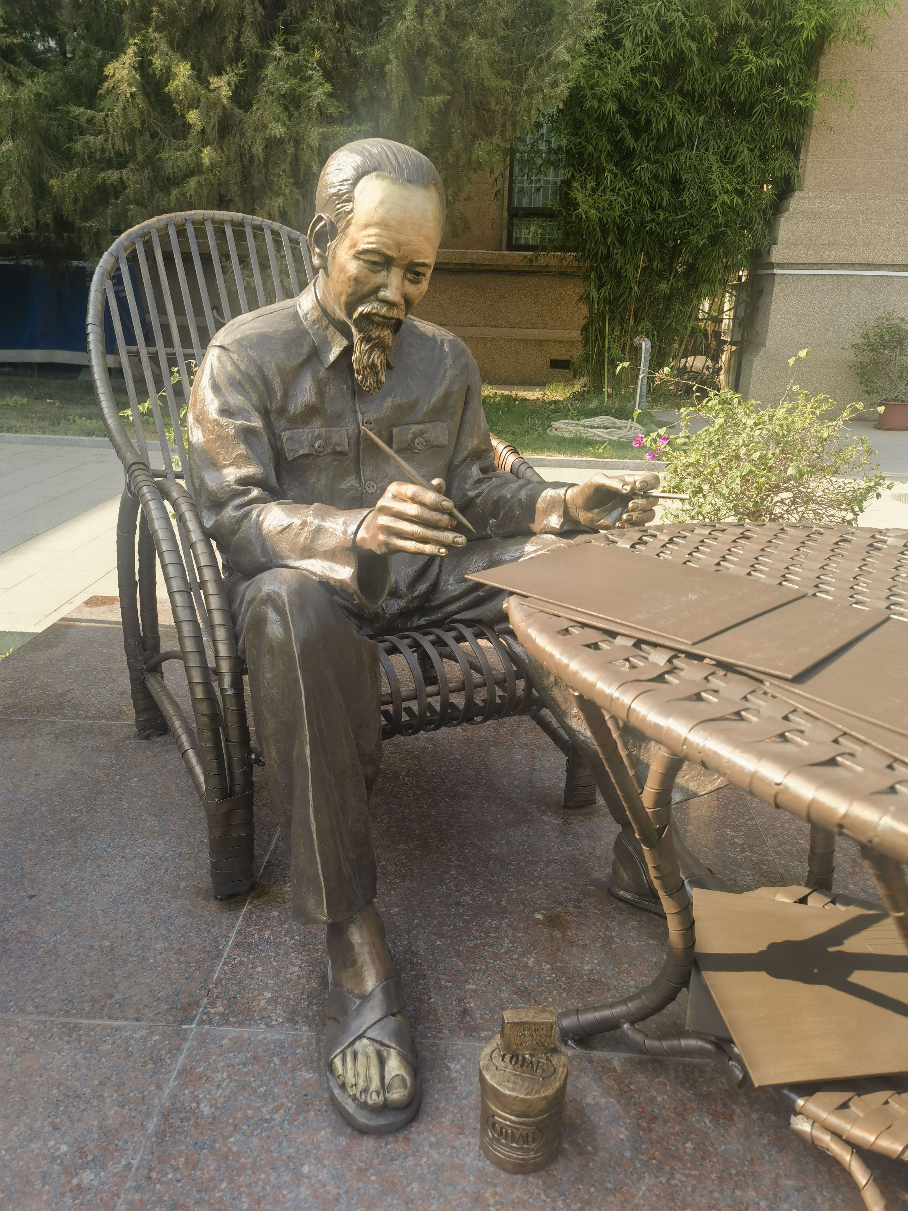 為越南駐華大使館的鑄銅人物雕像進行后期維護