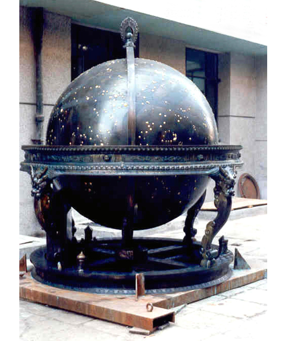 為比利時(shí)制作的仿清代康熙天體儀,高2.7米,球體直徑2.13米