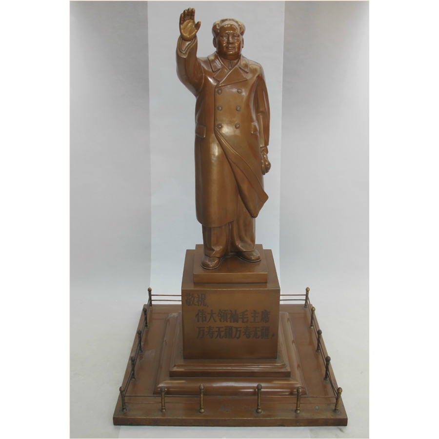 制作于1969年,用1.2毫米厚的紫銅板,采用傳統(tǒng)鍛鏨工藝精心制作而成。作為全廠職工為九大的獻(xiàn)禮。此件產(chǎn)品的工藝水平達(dá)到當(dāng)代銅鍛鏨雕刻工藝的最高水平,其造型逼真,特別是臉部的造型和人物細(xì)部的刻畫,充分表現(xiàn)出毛澤東的偉人形象和氣魄,是我廠的鎮(zhèn)廠之寶。