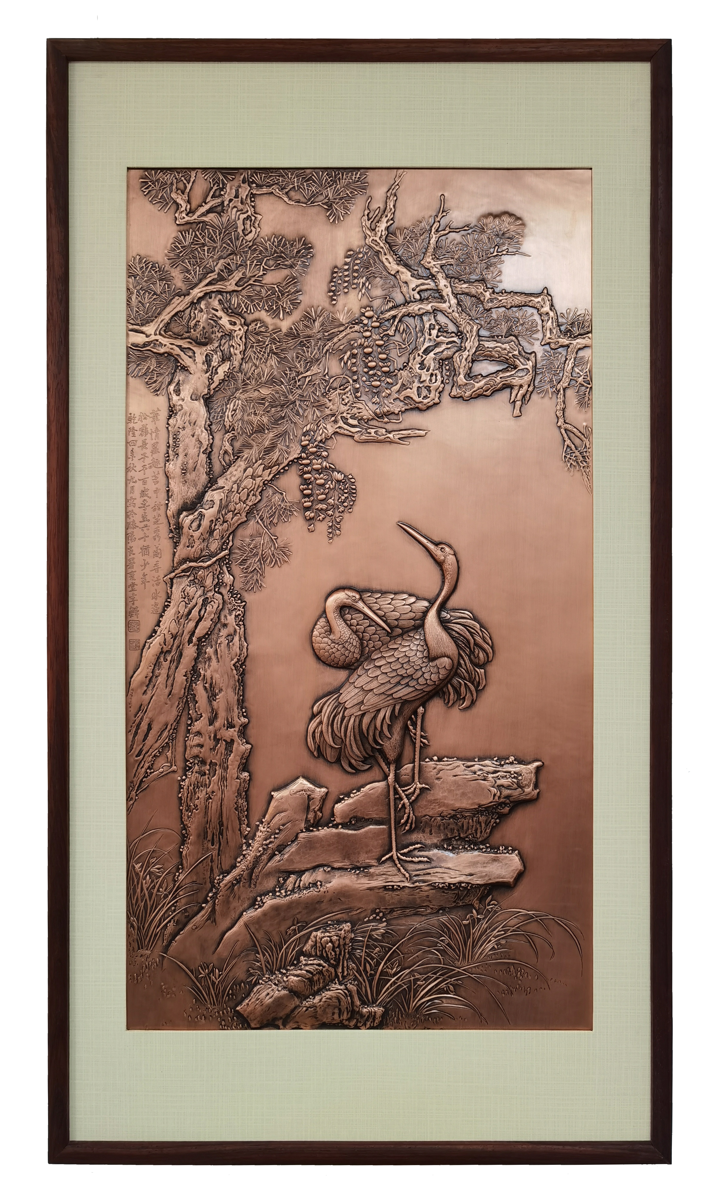 產(chǎn)品名稱:《松鶴延年》紫銅壁畫