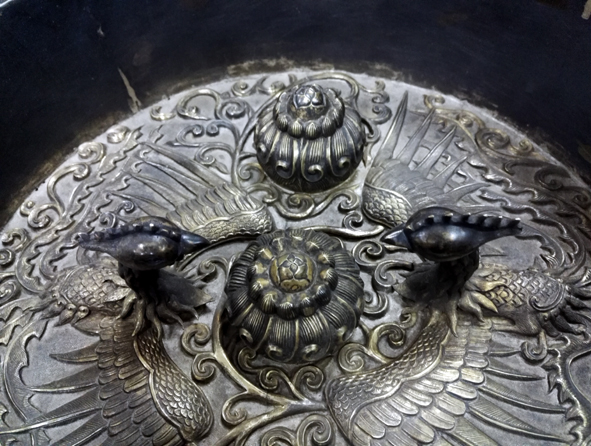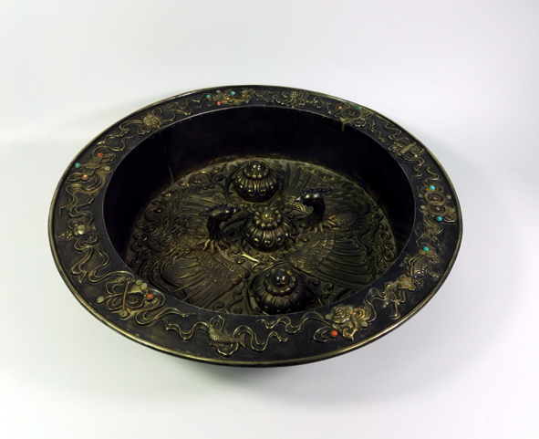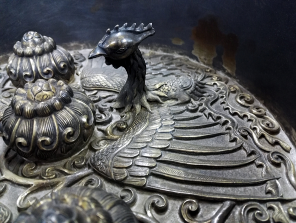 純銀鏨雕仿故宮金立雙鳳盥盆