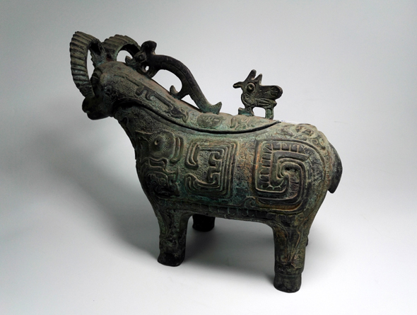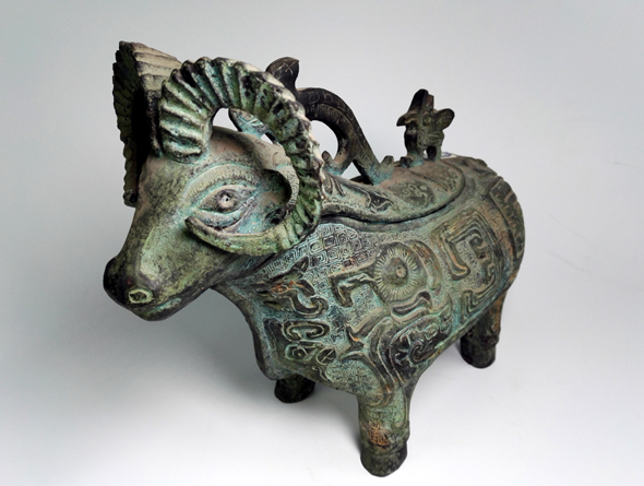 羊觥是商代后期作品,是一種容酒器,寓意財(cái)運(yùn)亨通。